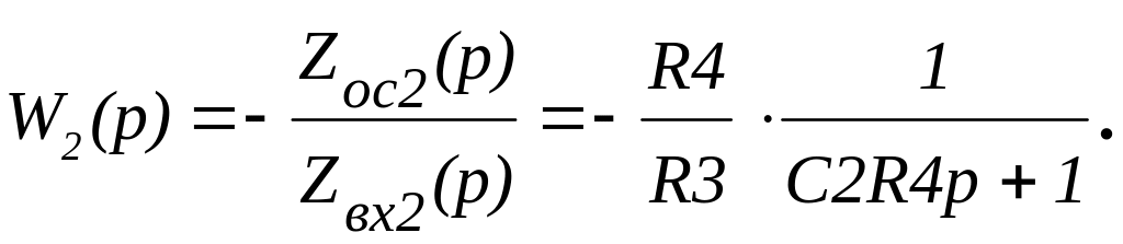 Полагая, что без учета инверсии входного сигнала усилителя передаточная функция W2(p) равна составляющей WА(p) из выражения (6.7), имеем: