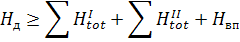 ΣHhtot = ΣHI + Нвп - сумма потерь напора по длине и в местных сопротивлениях с учетом накипи от оси водоподогревателя до оси смесителя диктующего прибора;