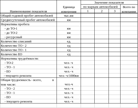 - •Приложение д расчет средних значений эксплуатационных показателей по маркам автомобилей