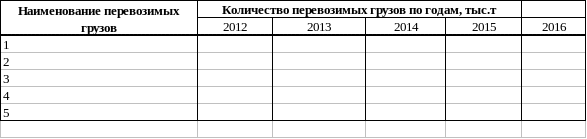 По условиям курсовой работы требуется выбрать не менее пяти наименований груза. При этом расстояния перевозки грузов должны быть разными во всех пяти случаях.