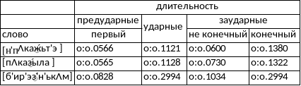 По длине звуки могут быть расположены в таком порядке: самые длинные – ударные и конечные (1300 – 1500). Далее идут не конечные заударные (1000). И самые короткие – предударные звуки (700 – 900).