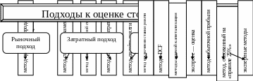 Постановлением Правительства РФ от 6 июля 2001 г. «Об учреждении стандартов оценки» определены 3 подхода к оценке стоимости материальных и нематериальных объектов: доходный, затратный, рыночный (рисунок 6).
