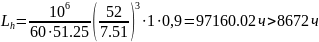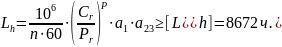 Подшипник 212 ГОСТ 8338-75 Сr = 52 кН; Сor = 31кН; Fa = 0, поэтому X = 1; У = 0 [4]