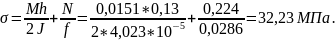 Расчётное сечение крышки нагружается продольной силой и изгибающим моментом. Их значения