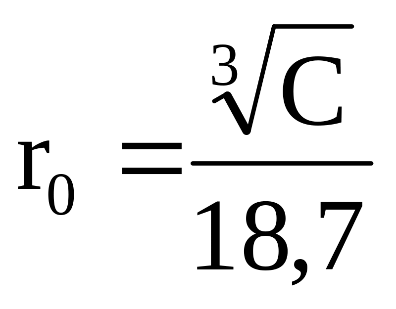 Радіус заряду rо0 обчислюється по формулах: