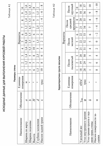 Вторая – вариант характеристик грунта засыпки (табл. А2).