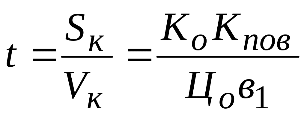 Из точки К/пов проводим линию,паралльельную Кц2 до пересечения с Кк1 в точке Кпов, в которой корабль и должен лечь на курс Кк2. Время лежания на курсе уклонения определяем по формуле