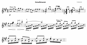 Название пьесы «Колыбельная» предполагает спокойное, легатное, тихое движение, небыстрый темп, отсутствие яркой, контрастной динамики, выразительное ведение мелодии большими, длинными фразами.