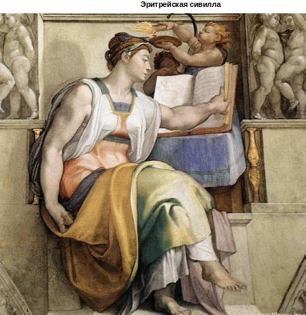 Отделение света от тьмы, фреска Микеланджело Буонарроти, фрагмент росписи Сикстинской капеллы. Общий замысел сикстинского плафона во многих отношениях остается неясным. Неизвестно, какой общей идейной программой связано содержание композиций, расположенных посредине свода; до сих пор убедительно не объяснено, почему Микеланджело ориентировал эти композиции таким образом, что осмотр их должен начинаться с «Опьянения Ноя», а завершаться «Отделением света от тьмы», то есть в порядке, обратном последовательности событий в Библии; темным остается смысл сцен и образов в композициях распалубок и люнетов. Но было бы ошибкой, исходя из того, считать, что содержание плафона нам остается неведомым. При всей неясности отдельных сюжетных мотивов и нерасшифрованности возможных символических сопоставлений подлинная основа содержания росписи совершенно очевидна — она с исключительной яркостью выражена не только в сюжетных композициях, но и в «бессюжетных» образах и даже в фигурах, имеющих чисто декоративное назначение, — это апофеоз творческой мощи человека, прославление его телесной и духовной красоты.