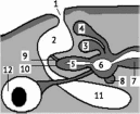 артерии (9), ведущие в лёгкие (10). При этом