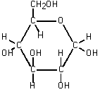 Углеводы (полисахариды) построены в основном из моносахаридных звеньев, имеющих в свободном мономерном состоянии формулу C6H2O6. Важнейшим для организма моносахаридом является глюкоза. Ее структурный вид:
