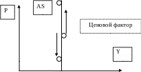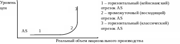 Предполагается, что промежуточный отрезок кривой AS описывает экономику, когда в результате неравномерного развития отдельных отраслей происходит увеличение реального объема национального производства на фоне повышения общего уровня цен. |