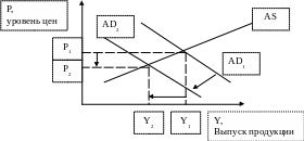 Рис. 98. Нарушение макроэкономического равновесия через увеличение совокупного предложения (AS) при неизменном совокупном спросе (AD)