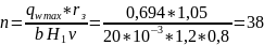 2) скорость потока v принимаем равной 0,8 м/с, т.е. меньше v p max = 1 м/с.