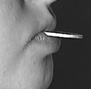 ●Специалист располагал большой палец своей правой руки на подбородке под нижней губой ребенка и производил легкое надавливание на его нижнюю челюсть в горизонтальном направлении; ребенок, напрягая мышцы нижней челюсти, пытался преодолеть сопротивление и выдвинуть нижнюю челюсть вперед.