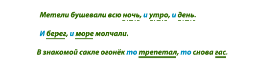неповторяющимися союзами и , или .
