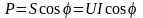S=UI - полная мощность, измеряется в вольт амперах [В*А]. Из треугольника мощностей определим: