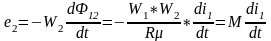 Если взять 2 катушки с числом витков W1 и W2 и поместить их в непосредственной близости друг от друга, то при подведении переменного тока в 1-й катушки возникает ЭДС самоиндукции и взаимоиндукции а во второй – ЭДС взаимной индукции и и мгновенного значение, которое можно записать следующим образом.