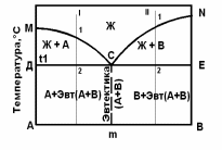 1 – диаграмма для сплавов, образующих механические смеси. 2 – диаграмма для сплавов с неограниченной растворимостью в тв сост. 3 – с ограниченной растворимостью