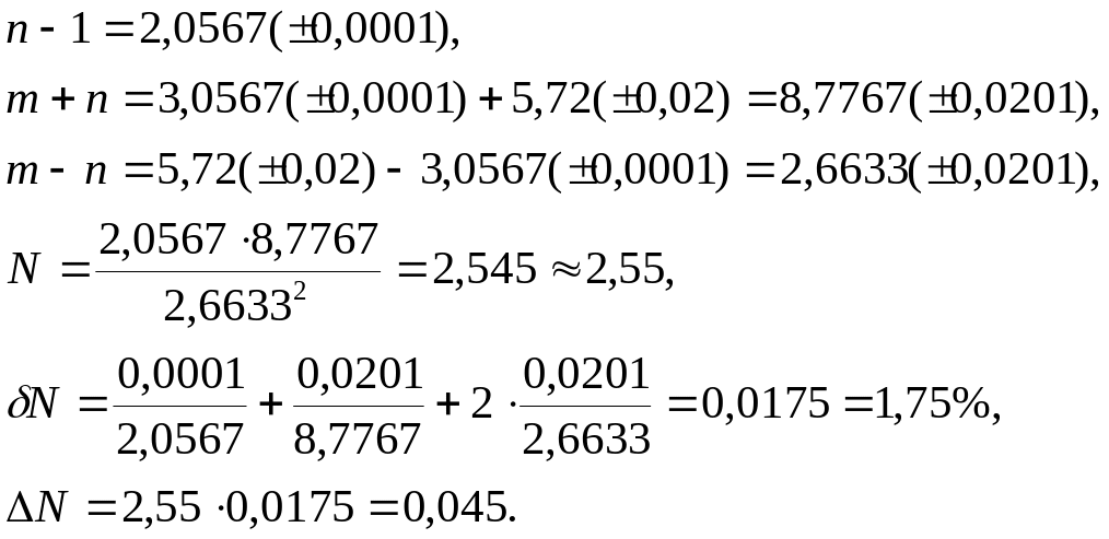 где n = 3,0567(0,0001), m = 5,72(0,02).