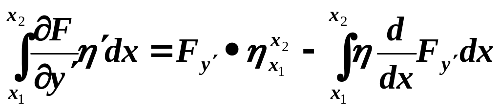 где M(x) кусочно-непрерывная, а η(x) – произвольная кусочно-гладкая функция, следует, что M(x)=0, получим уравнение Эйлера-Лагранжа в дифференциальной форме: