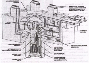 The ALMR reactor modules themselves are located beneath ground level. In fact, the only distinguishing characteristic that identifies the ground as being a reactor site are the four RVACS stacks rising from the ground. This low profile will hopefully improve public opinion about nuclear reactors. They expect the old proverb, “Out of sight, out of mind,” to apply.