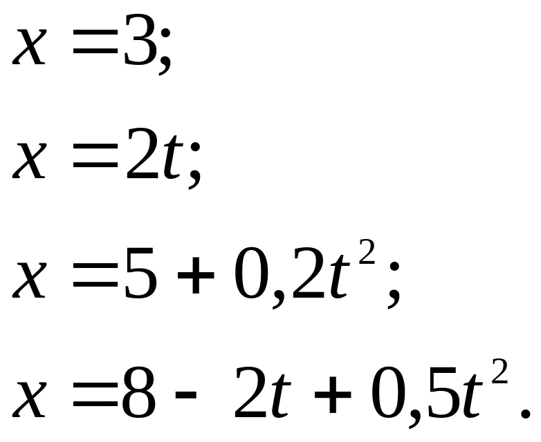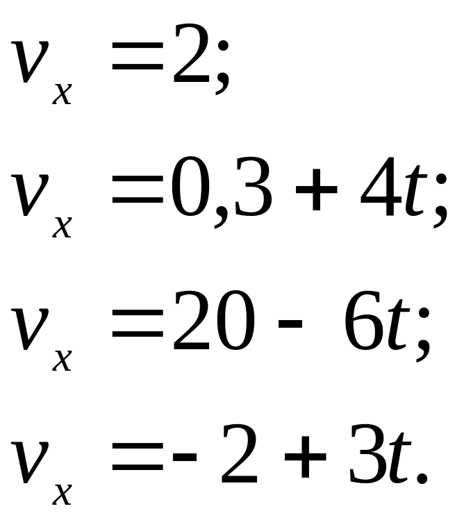 Опишите характер движения тела и определите зависимость проекции скорости этого тела на ось ОХ от времени. Значения всех величин в уравнении движения даны в SI.