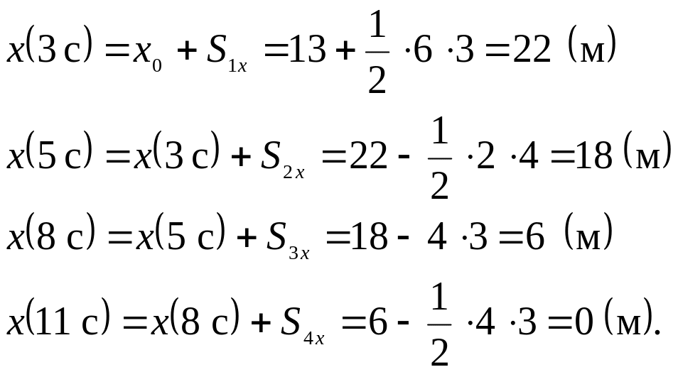 Шаг 3 Рассчитываем координату тела в конце каждого этапа. Конечная координата на одном этапе является начальной для следующего