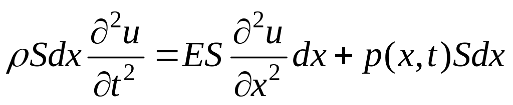 Если на стержень вдоль оси действует ещё и внешняя сила p (x, t), рассчитанная на единицу объема, то вместо уравнения (50) следует записать неоднородное уравнение