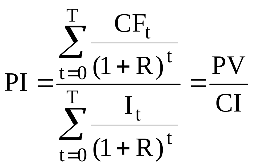 Индекс рентабельности проекта (PI) рассчитывается по формуле: