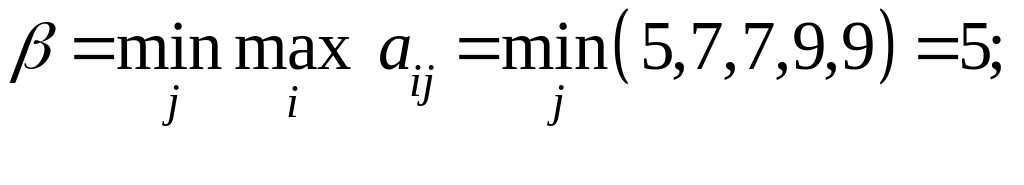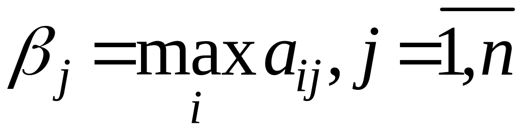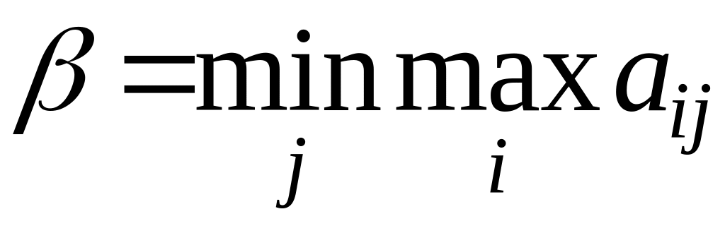 Второй игрок старается минимизировать свой проигрыш в условиях противодействия игрока А. Поэтому игрок В для каждой своей стратегии j определяет свой гарантированный проигрыш, т.е. то, что он вынужден будет заплатить при самом неблагоприятном поведении А: