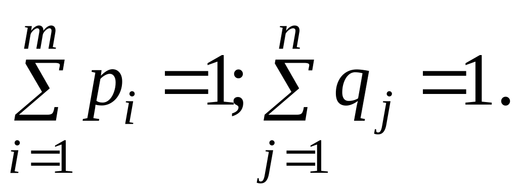Определение 22. Вектора и , описывающие выбор стратегий игроками А и В, называются стратегиями игроков; чистая стратегия Ai или Bj – это стратегия, выбранная с вероятностью, равной единице.