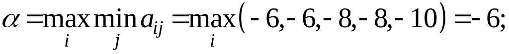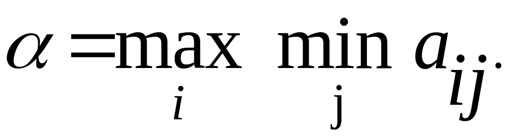 Т.к. выбор любой стратегии в его распоряжении, чтобы максимизировать свой гарантированный выигрыш игрок А из гарантированных выигрышей по стратегиям выбирает максимальный: