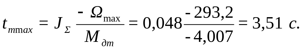Время пуска на скорость Ωmax и торможения со скорости Ωmax: