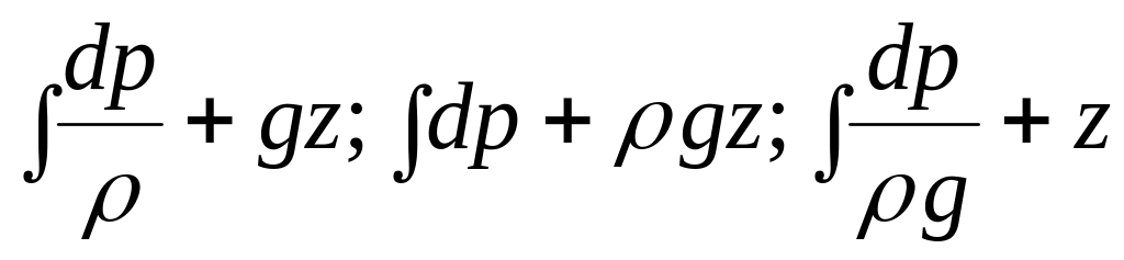 Все члены уравнения (3.34) имеют размерность давления ML-1 T-2 и выражают энергию, отнесенную к единице объема. Единица р в системе СИ — Дж/м3 = Па. Этим выражением удобно пользоваться при исследовании движения воздуха в шахтных вентиляционных сетях и вентиляторах. При движении капельной жидкости (например, воды, нефти), плотность которой постоянна, удобнее всего пользоваться уравнением (3.33), которое для р = const примет вид