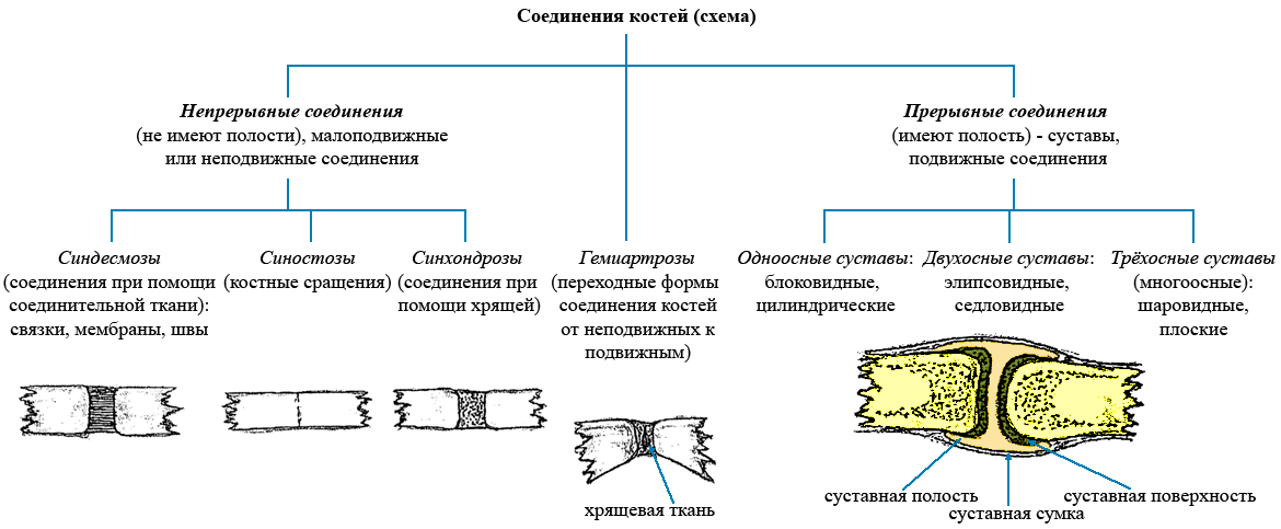 Непрерывные соединения (не имеют полости), малоподвижные или неподвижные соединения