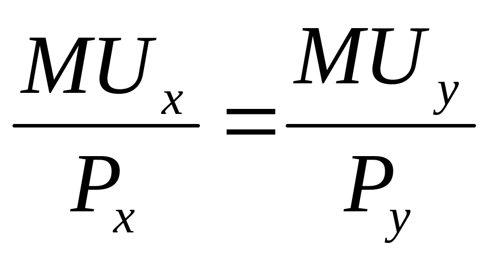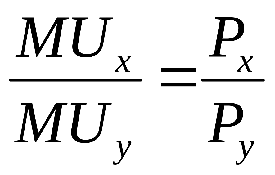 Можно обосновать равновесие потребителя алгебраически. Равновесие потребителя соответствует комбинации товаров, которая максимизирует полезность при заданном бюджетном ограничении. Для того, чтобы вывести уравнение потребительского равновесия, необходимо приравнять угол наклона кривой безразличия (MRSxy =MUx/MUy) с углом наклона бюджетной линии (Px/Ру):