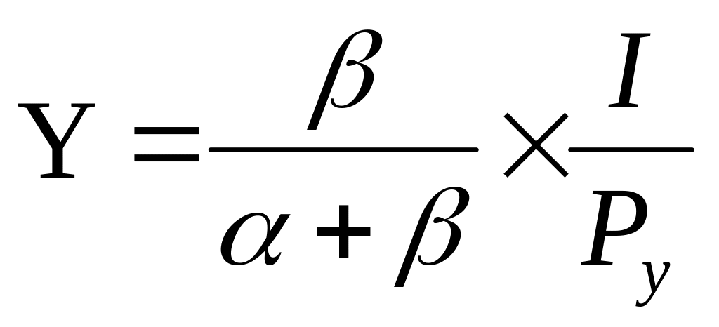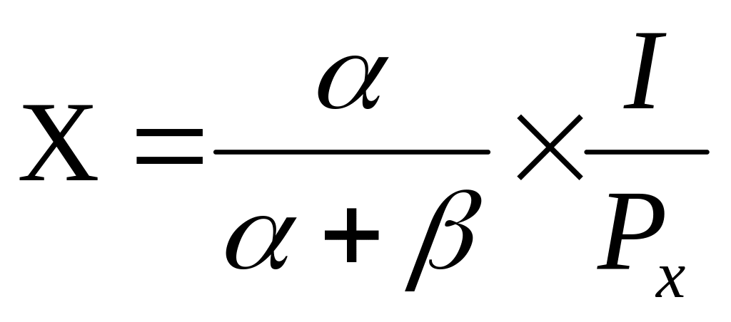 где α и β степени при переменных в уравнении полезности вида Кобба-Дугласа, т.е. U(x,y)=ХαYβ ;