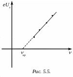 Точка пересечения графика еUз() с осью частот соответствует еUз=0, что согласно (5.5) дает ЕКmax=0, а значит полученная частота это и есть красная граница фотоэффекта для данного фотоэмиттера (кр). Тогда из (5.8) можно определить порог фотоэффекта: