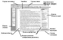 На рисунке 1 обозначены основные элементы графического интерфейса текстового процессора MS Word: