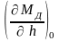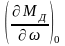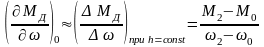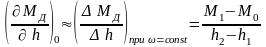 Для определения частной производной нужно зафиксировать параметр h, например, принять h=h1 и определить значения момента МД при двух частотах ω0 и ω2. Изменение частоты будет равно Δω=ω2-ω0, а изменение момента: ΔМД=М2-М0. Приближенное значение частной производной в точке 0: