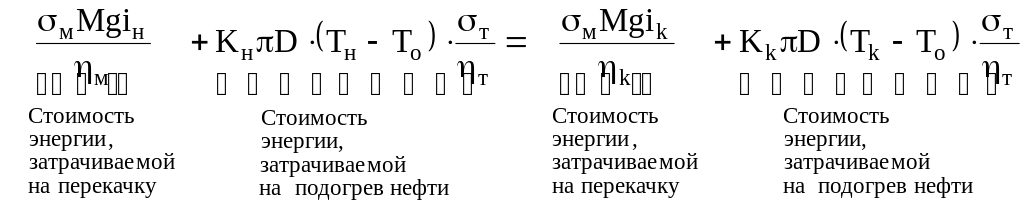 Так как все капитальные вложения уже сделаны, оптимизация Тн и Тк выполняется из условия минимизации эксплуатационных расходов, связанных с температурным режимом перекачки, а именно платы за энергию, потребляемую на перекачку и подогрев нефти.