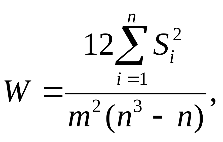 При анализе оценок, полученных от экспертов, часто возникает задача определения общей меры согласованности экспертных оценок. Для этого используют коэффициент конкордации, который является числовым критерием согласованности мнений экспертов в рассматриваемой группе. Поскольку каждый объект характеризуется совокупностью рангов, полученных от m экспертов, то в основу статистической меры согласованности, очевидно, может быть положена средняя сумма рангов одного объекта и отклонения от нее.