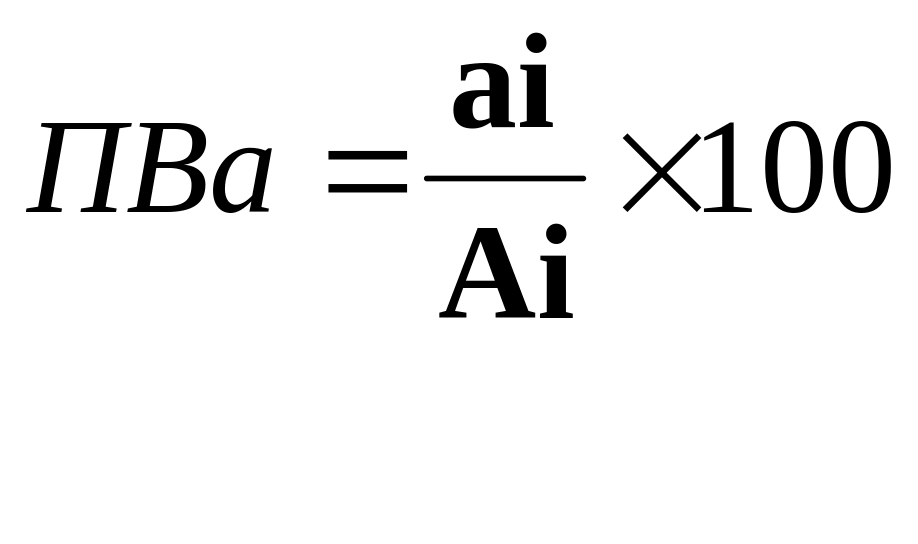 Питома вага (ПВа), або частка показника аі в показнику Аі визначається за формулою: