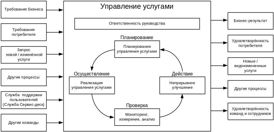 Рисунок 7.6 – Цикл PDCA при управлении услугами согласно ISO 20000