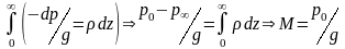 Зная массу единичного атмосферного столба и умножив ее на площадь поверхности земного шара 4πR2 = 5,1∙1014 м2, можно приближенно оценить массу атмосферы Земли M = 5,1∙1018 кг