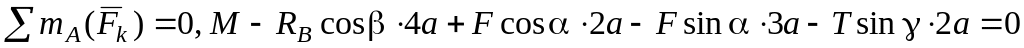 Дано: F = 25 кН, = 60°, Р = 18 кН, = 75°, М = 50 кНм, = 30°, а = 0,5 м. Определить: реакции в точках А и В, вызываемые действующими нагрузками.