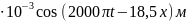 У середовищі поширюється плоска звукова хвиля s=Acos(ωt - kx). Записати рівняння хвилі, якщо амплітуда хвилі дорівнює 5мм, швидкість поширення 340 м/с, частота хвилі 1000Гц. (s= 5