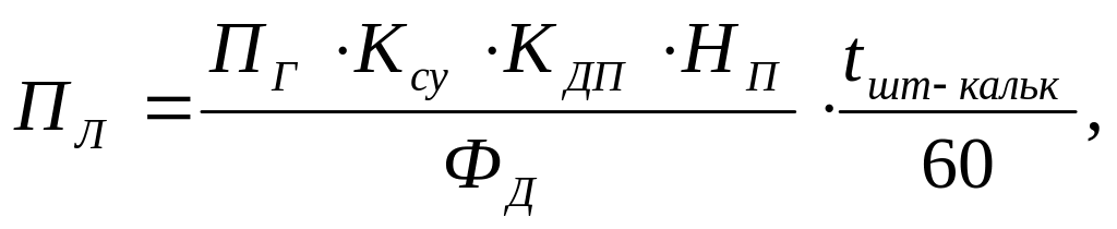 Номинальный фонд времени равен календарному фонду времени за вычетом нерабочих дней, смен и часов.