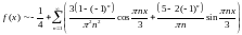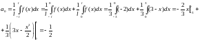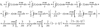 Вычислим коэффициенты ряда. Поскольку функция разрывна в начале координат, то каждый коэффициент Фурье очевидным образом следует записать в виде суммы двух интегралов: